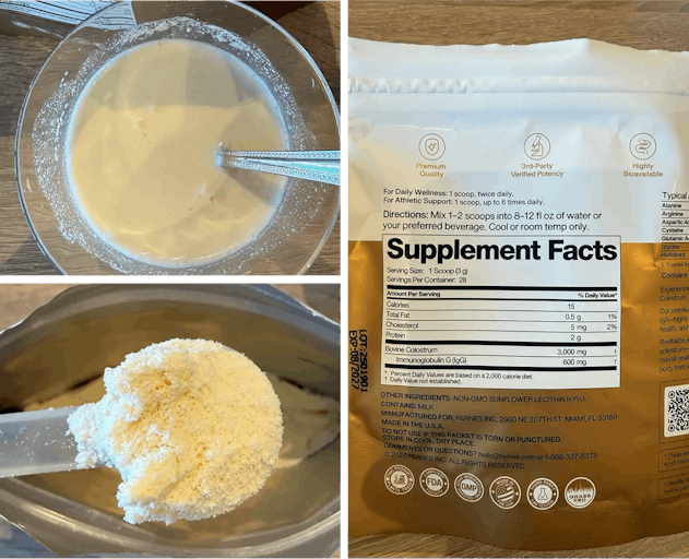 Pure colostrum has a mild, creamy taste—not overly sweet or artificial. It should mix easily in water or smoothies without clumping. [45]